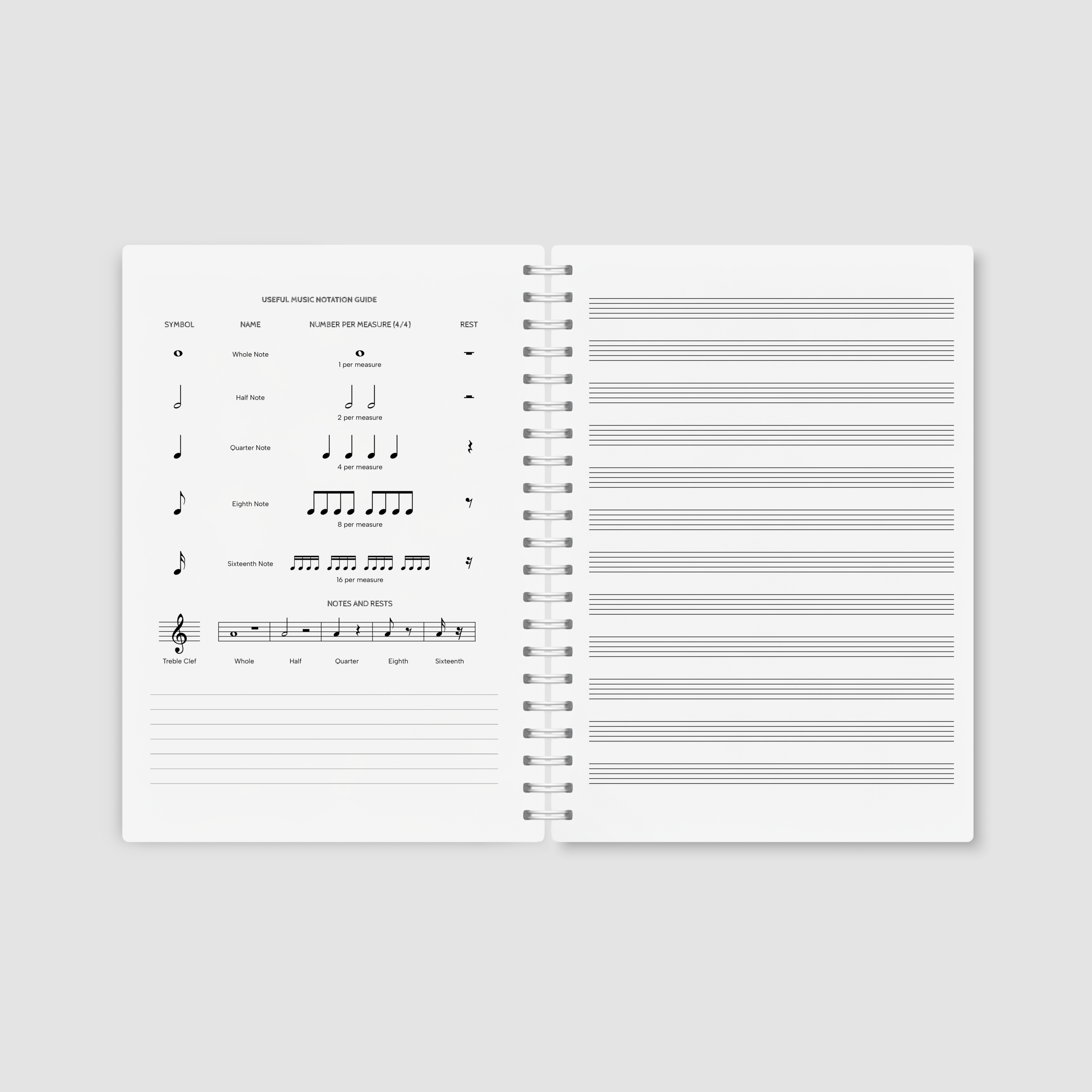 From first scribbles to final compositions, our music books are made for musicians who love putting notes to paper. Each one includes a handy notation page and perfectly printed staves on crisp, high-quality paper making them the ideal companion for songwriters, composers, and anyone who hears music everywhere.